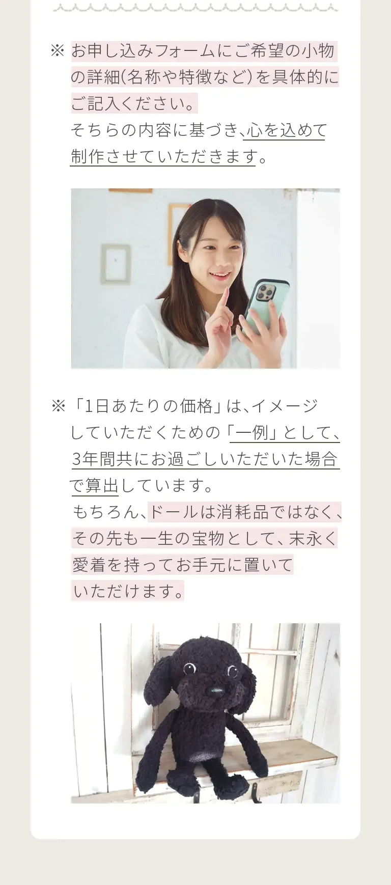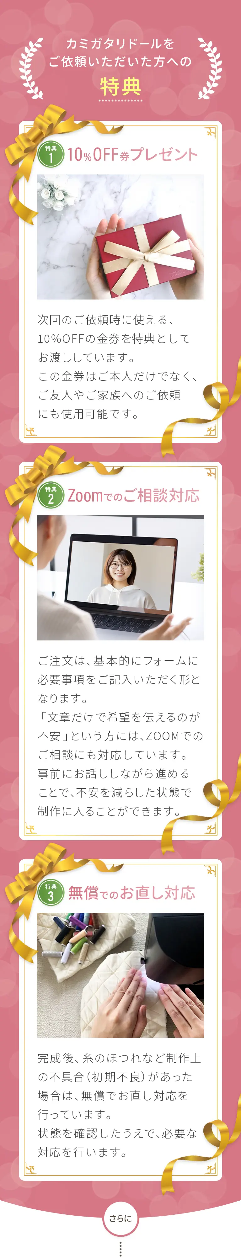 事前にお伺いしていた内容と比べて、明らかなイメージのズレがあると感じられた場合は、商品到着後7日以内にLINEにてご連絡ください。