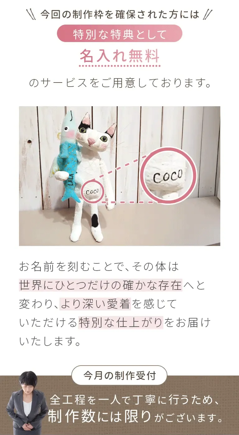 現在の受付期間内にお申し込みいただいた場合は、〈名入れ無料〉で対応しています。