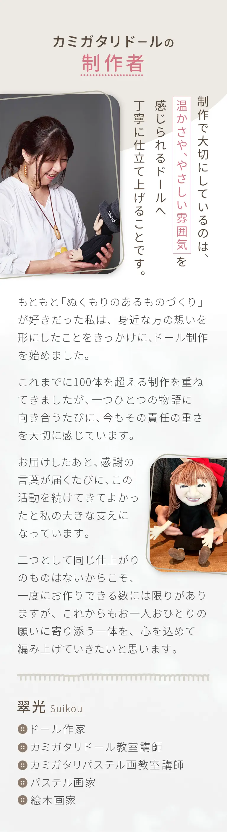写真そのものをそのまま再現するものではありません。お送りいただいた写真やご希望内容を参考にしながら、雰囲気や印象を大切にして制作します。