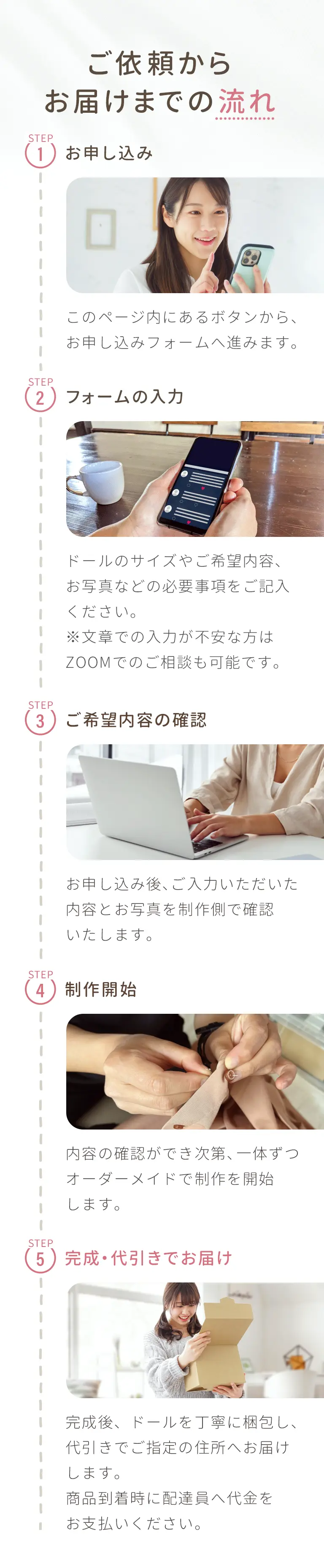 お支払いは、完成後に代引きでのお届けとなります。商品が到着した際に、配達員へ代金をお支払いください。